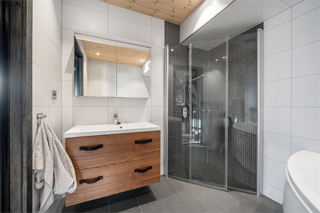 2.Etasje: Gang/stue/kjøkken, 2 bad / vaskerom, 3 soverom.2 boder i kjeller.