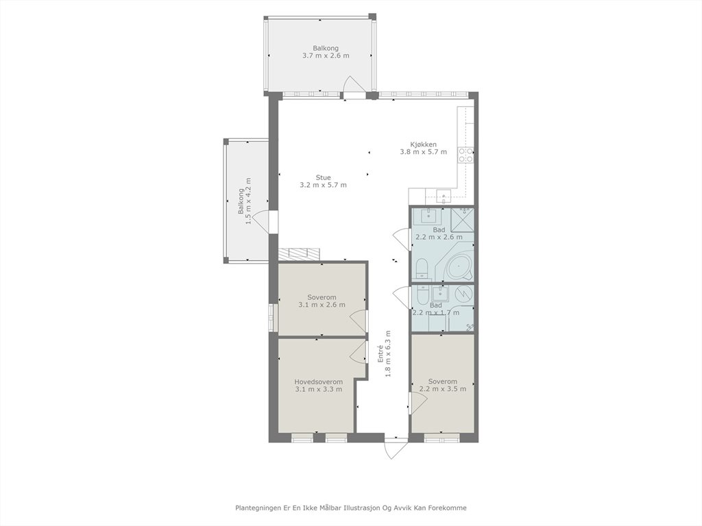 Boligen kan ha en mangel dersom det er avvik mellom opplyst og faktisk areal, forutsatt at avviket er på 2% eller mer og minimum 1 kvm.