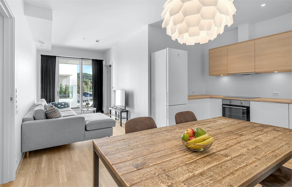 Alle integrerte hvitevarer (herunder eventuell oppvaskmaskin om det står i boligen på visningstidspunkt) på kjøkken følger med i handelen. Kjøleskap/frys følger med. Øvrige hvitevarer medfølger ikke dersom ikke det blir avtalt. Medfølgende hvitevarer følger i den stand de er på visning og gir ikke reklamasjonsgrunnlag.Adkomst