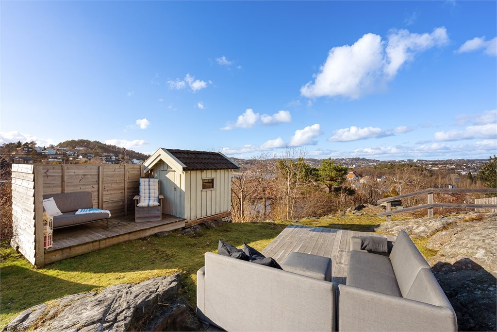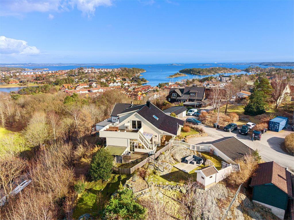 Et smykke av en tomt! Her får man en perfekt og sjelden kombinasjon av fantastisk sjøutsikt, sol fra morgen til kveld og usjenerte uteplasser. Tomten er på over halvannet mål og har flere soner med forskjellige solforhold. Her finner man alltid en plass i solen eller i le for vær og vind. Tomten er opparbeidet med gressplen, div. beplantning, plattinger, fjell/naturtomt og asfaltert gårdsplass.Standard