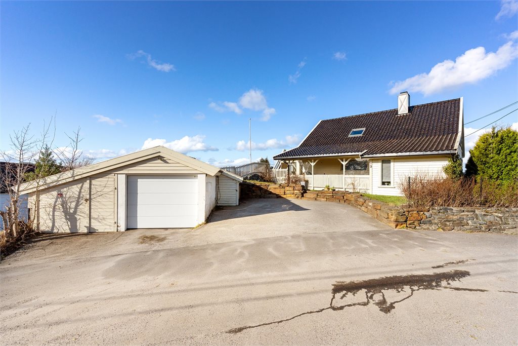 I garasje og biloppstillingsplass på egen tomt. Det er elbil-lader i garasjen.Hvitevarer