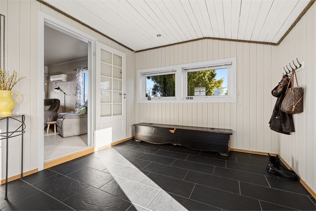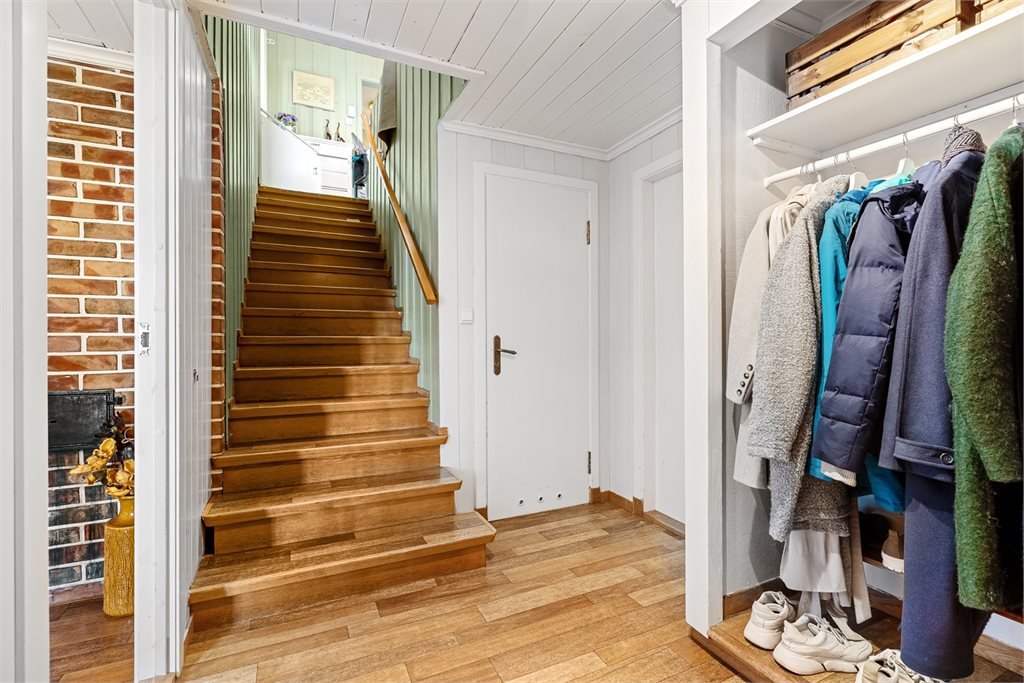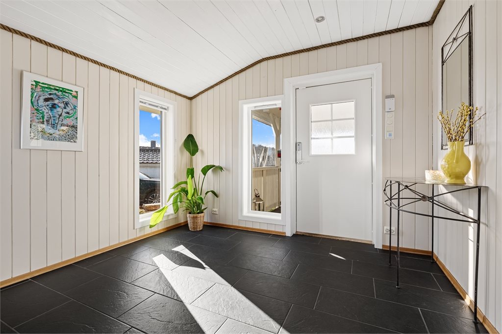 - Entré med flislagt gulv m/varmekabler. God plass til oppbevaring av yttertøy og sko.