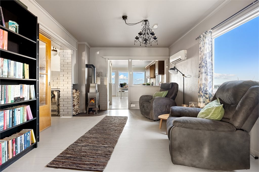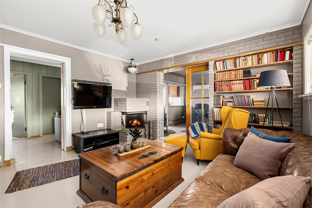 Boligen har mursteinspipe, vedovn og åpen peis.