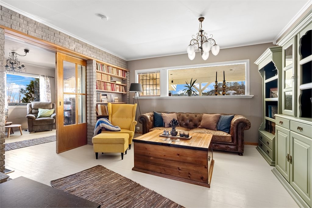 I boligens 1.etasje er det satt opp en vegg i stuen og delt rommet for å etablere et ekstra soverom.