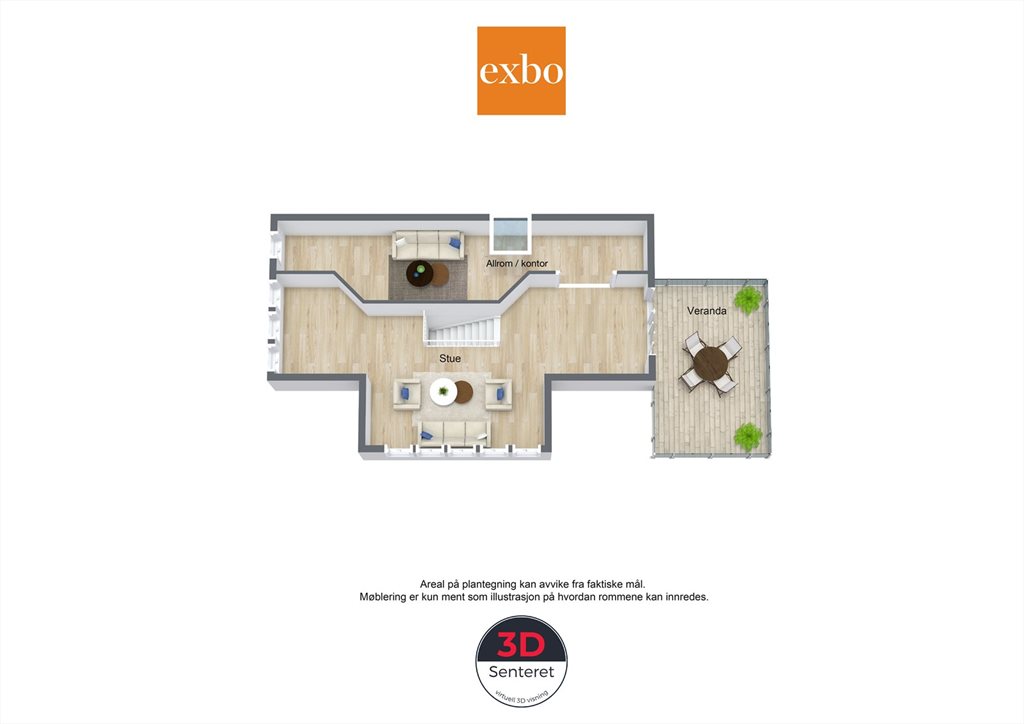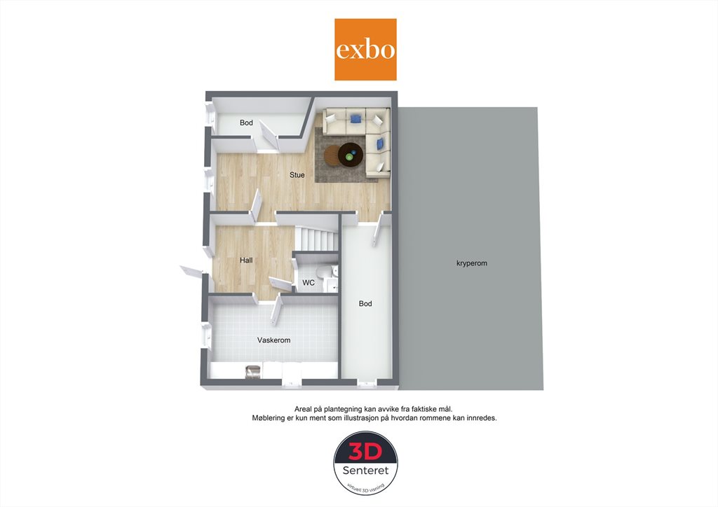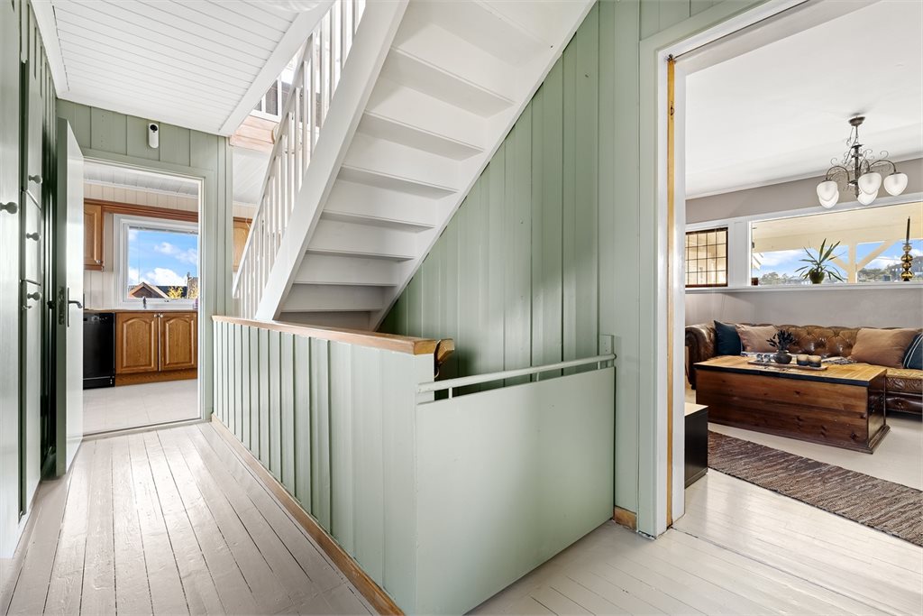- Stue med trapp opp til 1.Etasje. Stuen er delvis oppdelt i stue/gang med egen utgang.