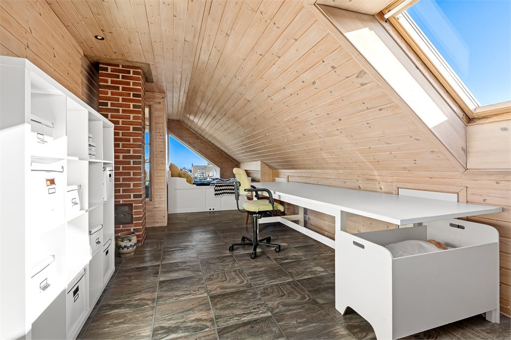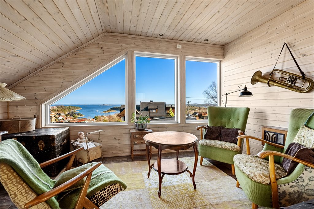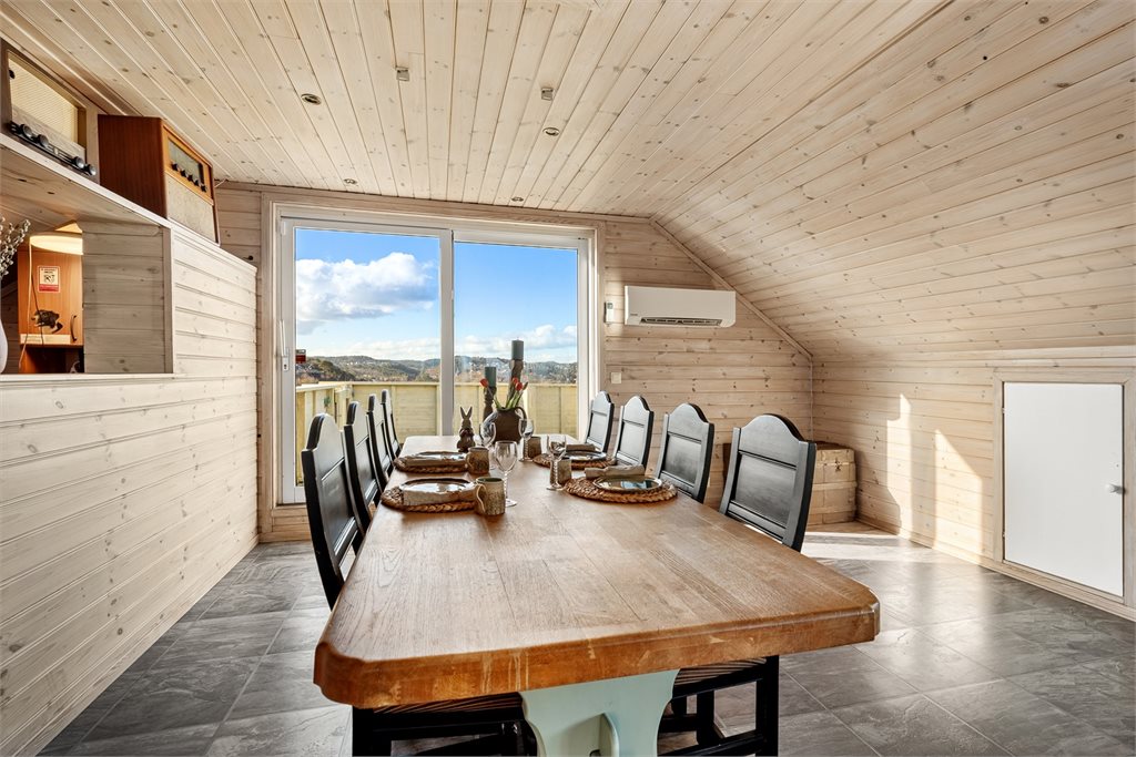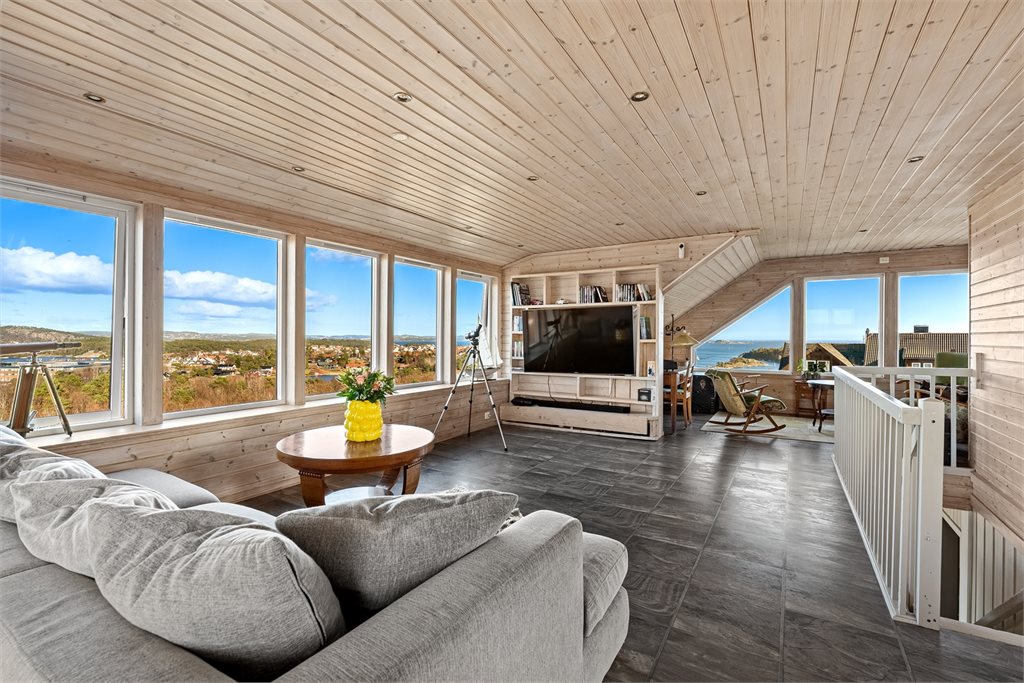- Stor og lys loftstue. Loftsetasjen er ny i 2004 og har særdeles flott utsikt fra store vindusflater. Stuen har god plass til stort sofahjørne m.m. og har utgang til takterrasse på baksiden.