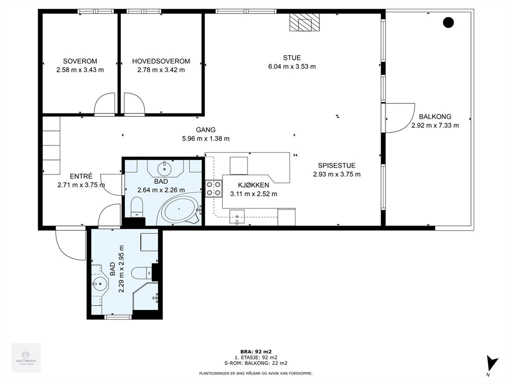 Boligen kan ha en mangel dersom det er avvik mellom opplyst og faktisk areal, forutsatt at avviket er på 2% eller mer og minimum 1 kvm.