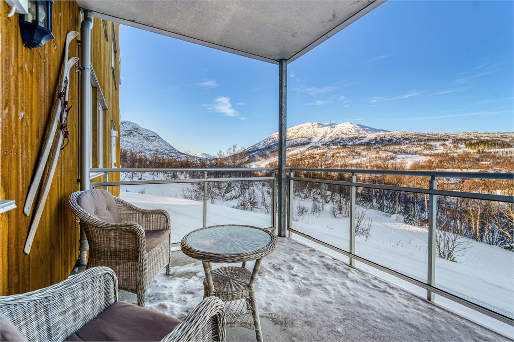 Utvendig består av en balkong på 8,40 m2 ellers
