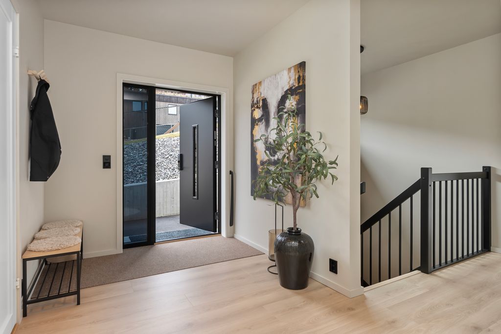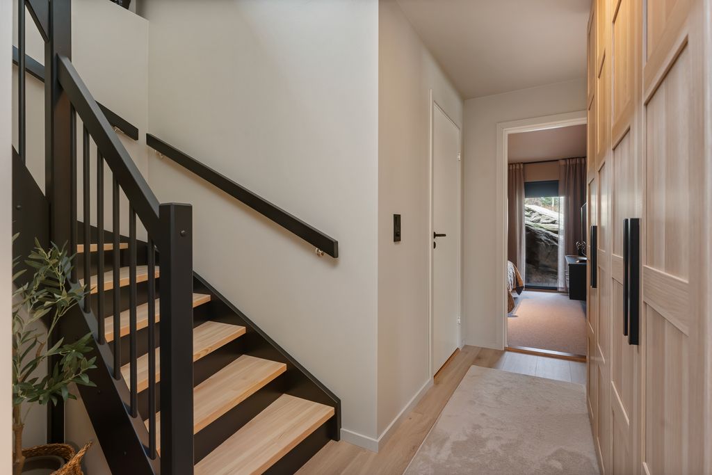 Entré / trappegang, stue/kjøkken, bad,