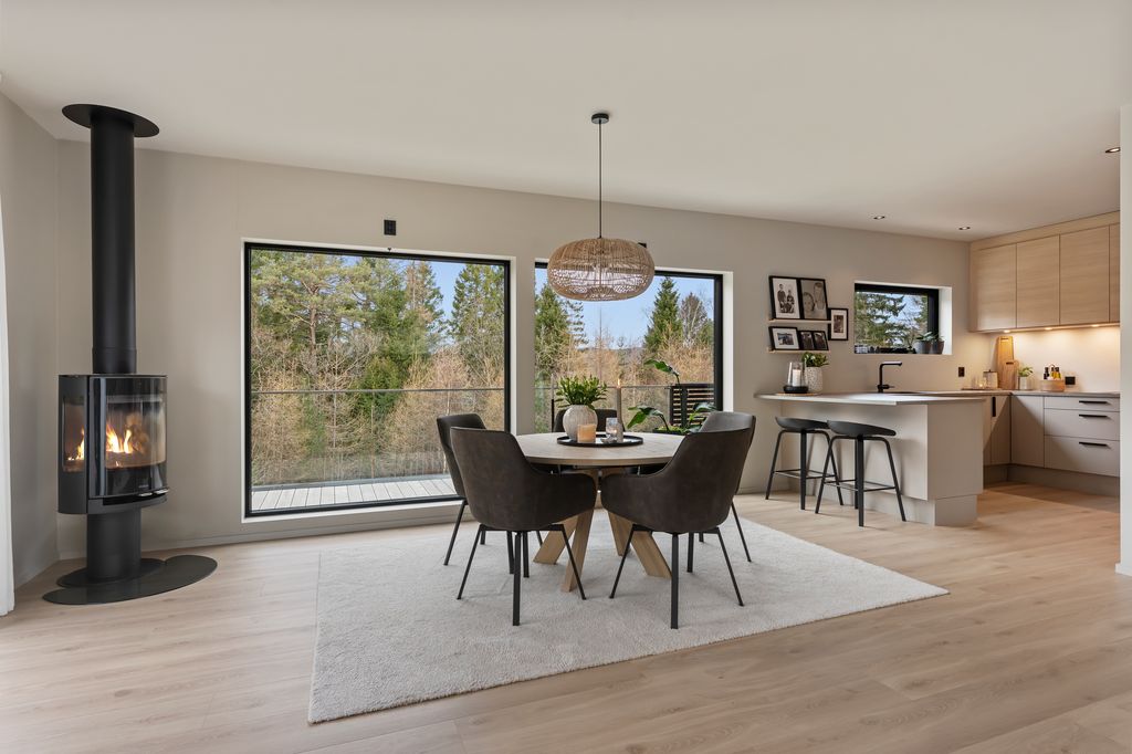 Oppvarmingskilder: Elektrisk og vedovnVegg-/fastmonterte ovner som står i boligen ved framvisning medfølger i handelen.