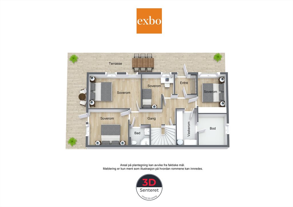 Entré, 4 soverom, bad, vaskerom, gang,
