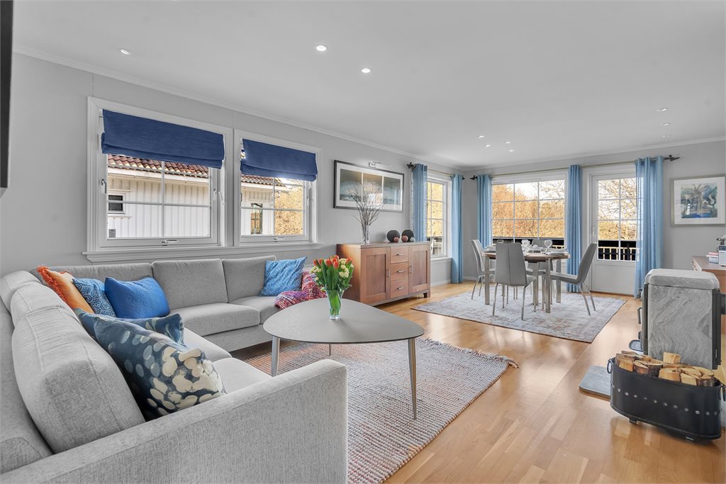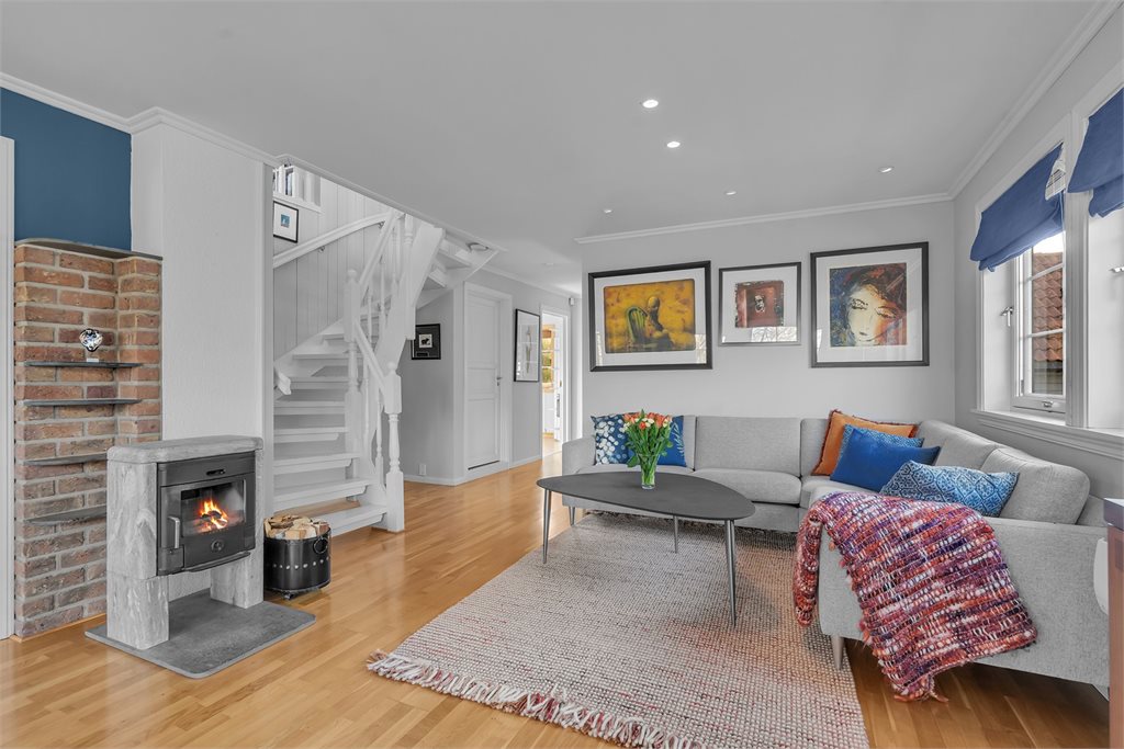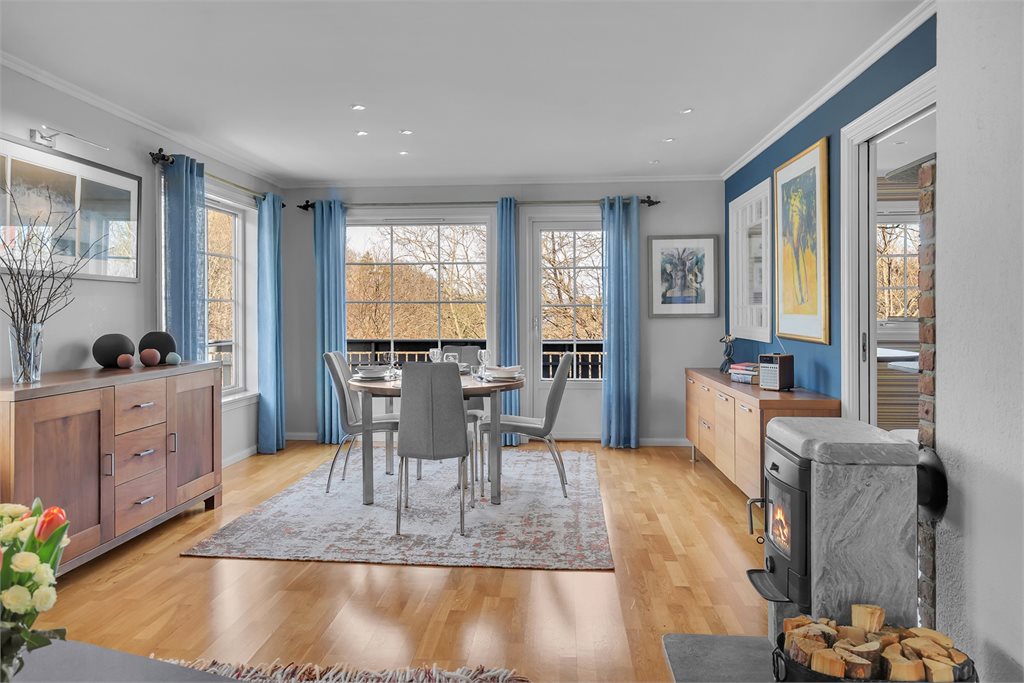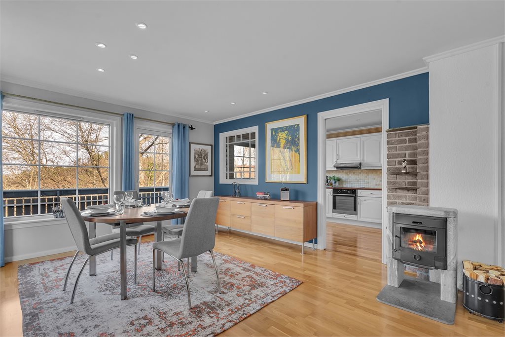 Oppvarmingskilder: Varmepumpe, vedovn og strømVegg-/fastmonterte ovner som står i boligen ved framvisning medfølger i handelen.