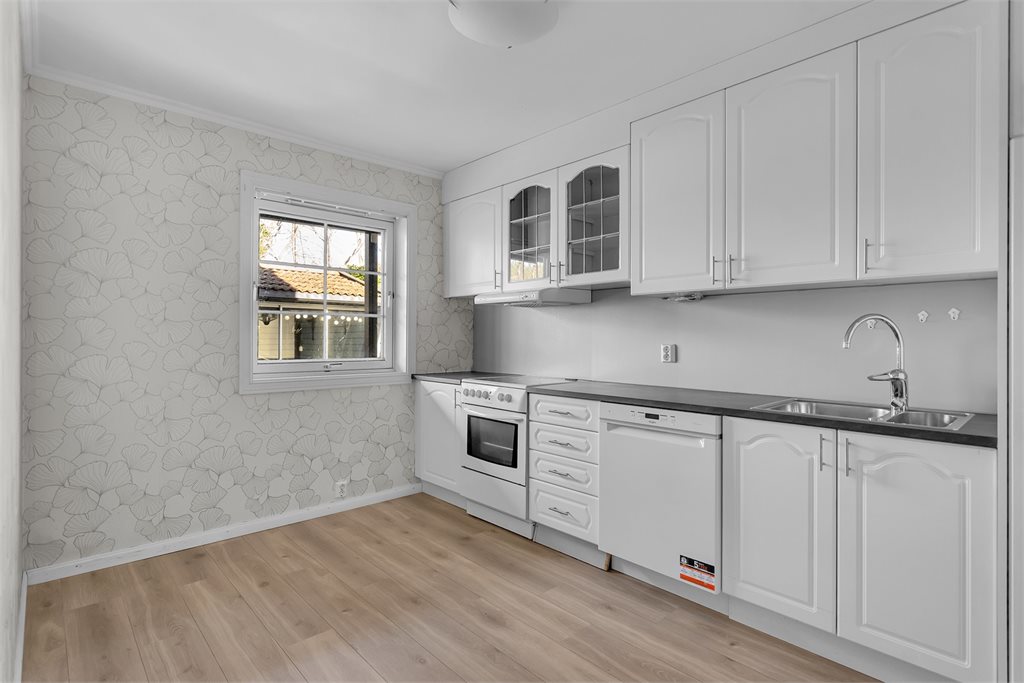 Alle integrerte hvitevarer (herunder eventuell oppvaskmaskin om det står i boligen på visningstidspunkt) på kjøkken følger med i handelen. Øvrige hvitevarer medfølger ikke dersom ikke det blir avtalt. Medfølgende hvitevarer følger i den stand de er på visning og gir ikke reklamasjonsgrunnlag.Adkomst