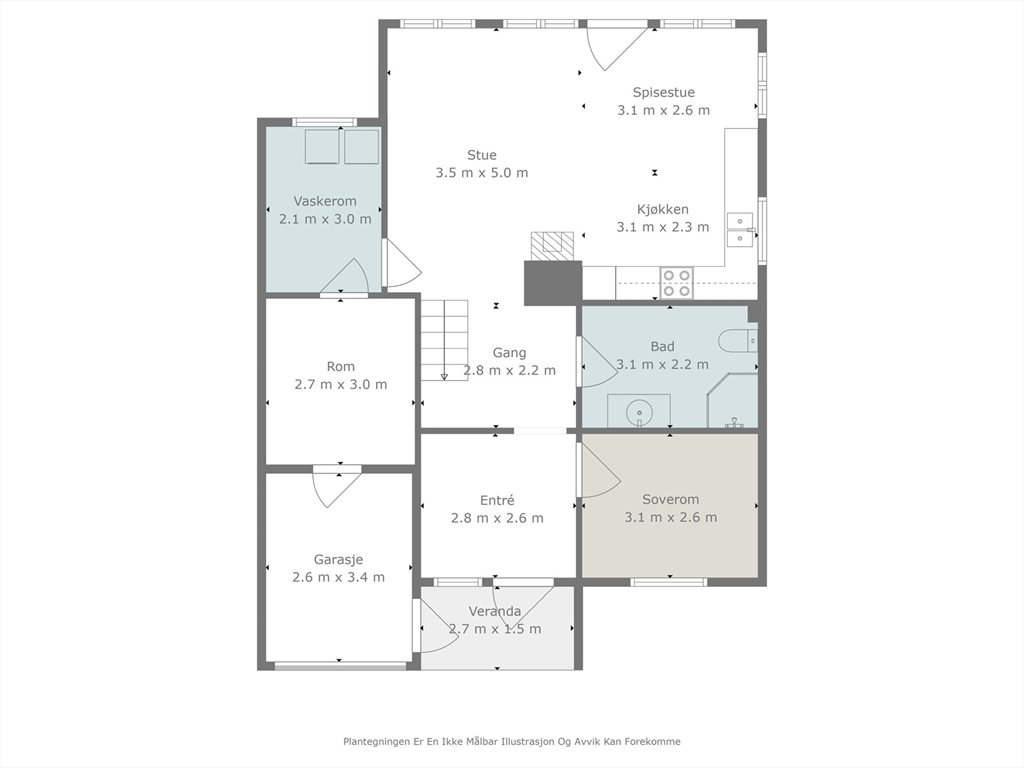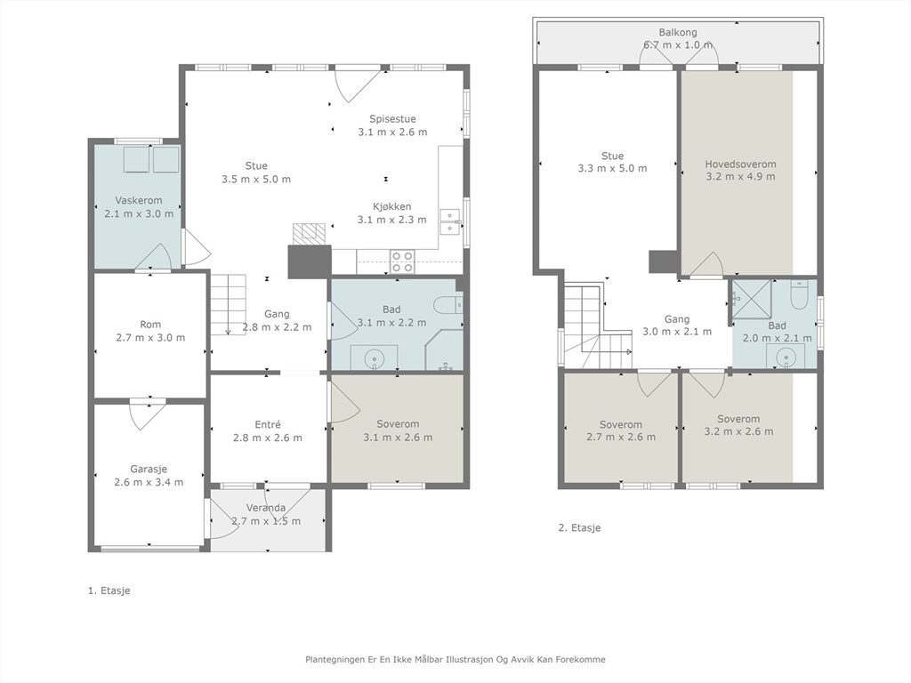 1 Etasje Entré, Soverom, Bad, Stue/kjøkken, Vaskerom, Garasje2 Etasje TV-stue, Soverom, Bad, Soverom 2, Soverom 3