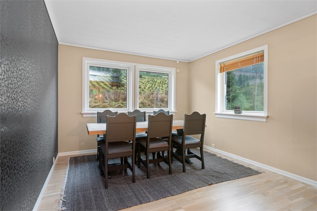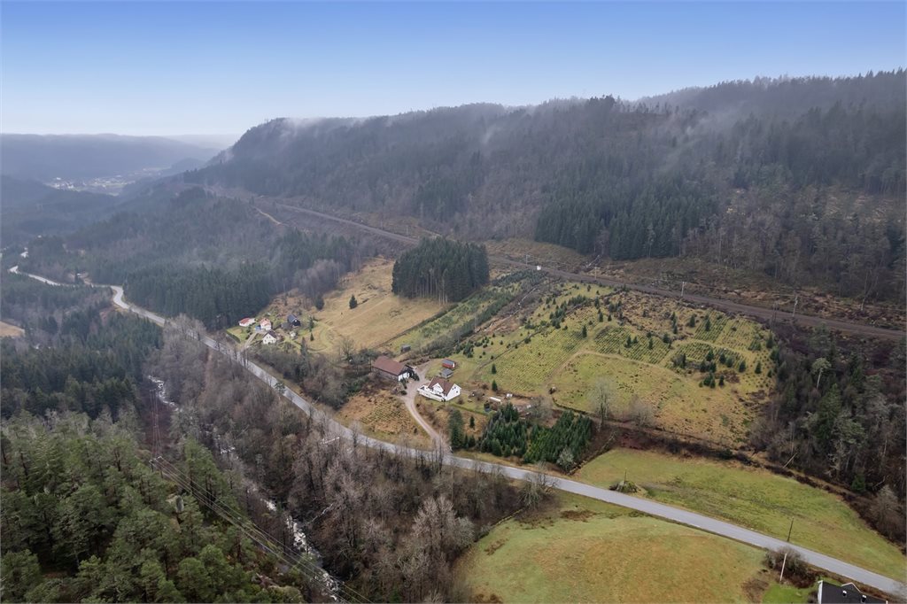 Småbruk med enebolig med integrert garasje beliggende landlig til ved Fjellestad, Marnardal. Området tilbyr nærhet til turområder.Parkering