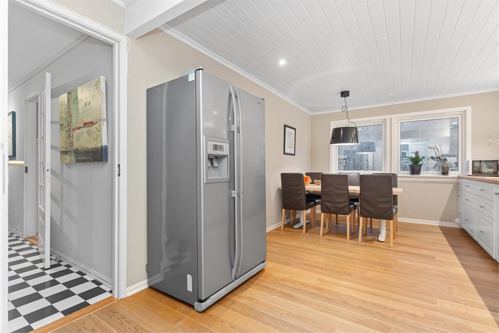Alle integrerte hvitevarer (herunder eventuell oppvaskmaskin om det står i boligen på visningstidspunkt) på kjøkken følger med i handelen. Øvrige hvitevarer medfølger ikke dersom ikke det blir avtalt. Medfølgende hvitevarer følger i den stand de er på visning og gir ikke reklamasjonsgrunnlag.Adkomst