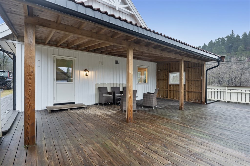 disse. Garasjen med dets takterrasse, samt deler av veranda i