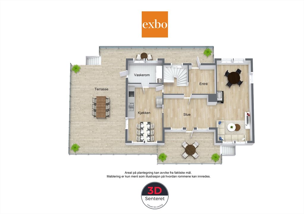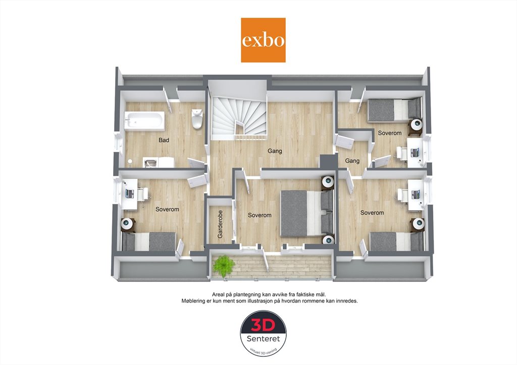 Det gjøres oppmerksom på at interiørtegningene som ligger vedlagt prospektet er skissetegninger utarbeidet av Exbo og viser hvordan boligen er benyttet i dag. Tegningene er ikke målsatt eller juridisk bindende men kun ment som veiledende interiørtegninger.Det forutsettes at skjøtet tinglyses på ny eier. Hvis kjøper ikke ønsker en hjemmelsoverføring av eiendommen til seg, må det tas forbehold om dette i budet.