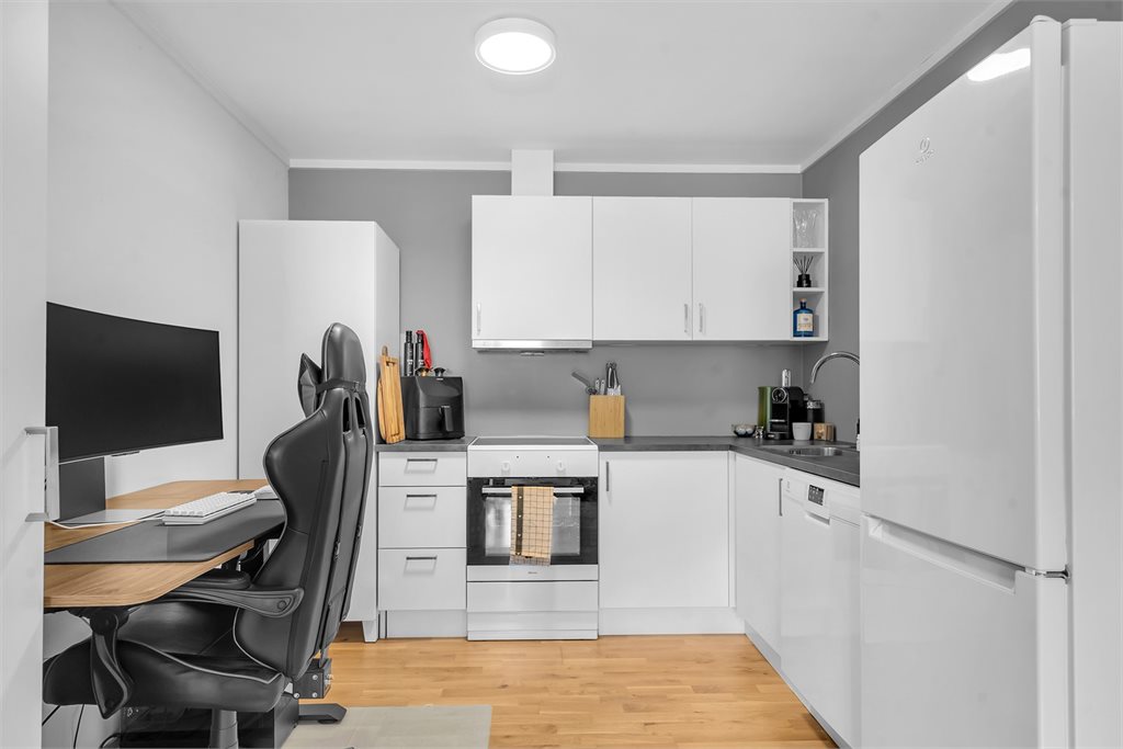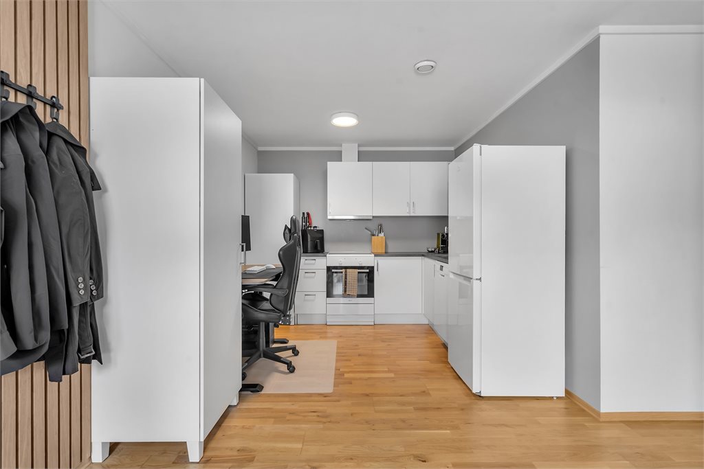 Alle integrerte hvitevarer (herunder eventuell oppvaskmaskin om det står i boligen på visningstidspunkt) på kjøkken følger med i handelen. Øvrige hvitevarer medfølger ikke dersom ikke det blir avtalt. Medfølgende hvitevarer følger i den stand de er på visning og gir ikke reklamasjonsgrunnlag.Adkomst