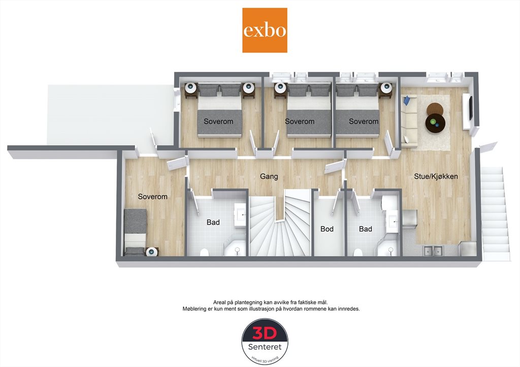 Bad, soverom 1, soverom 2, soverom 3, bod