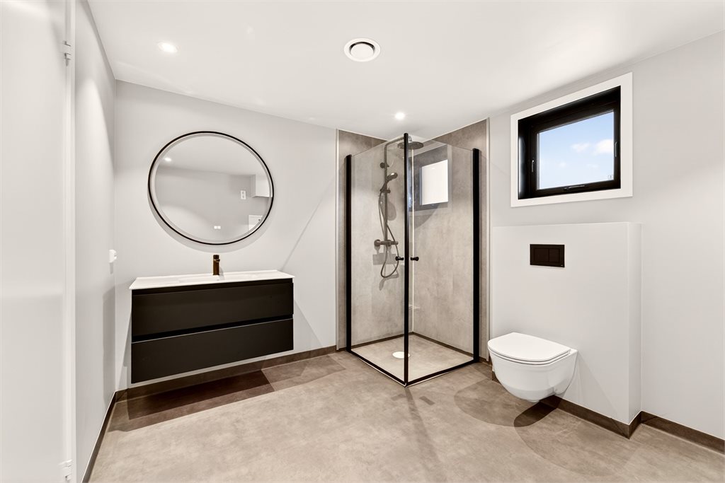 -Vindu på bad ligger innenfor våtsone for dusjhjørne.
