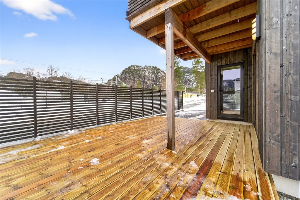 Leiligheten ligger i ett etablert boligområde i Sira i Flekkefjord kommune. ligger solrikt til med nærhet til skole ,butikk og togstasjon.Ligger i 1 etasje i en horisontaldelt bolig .