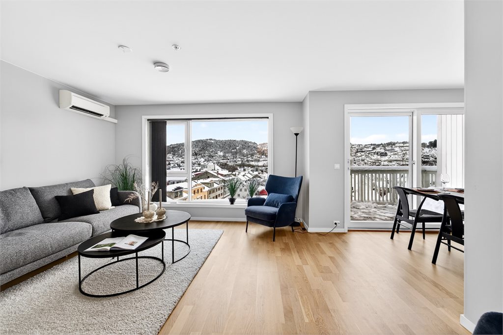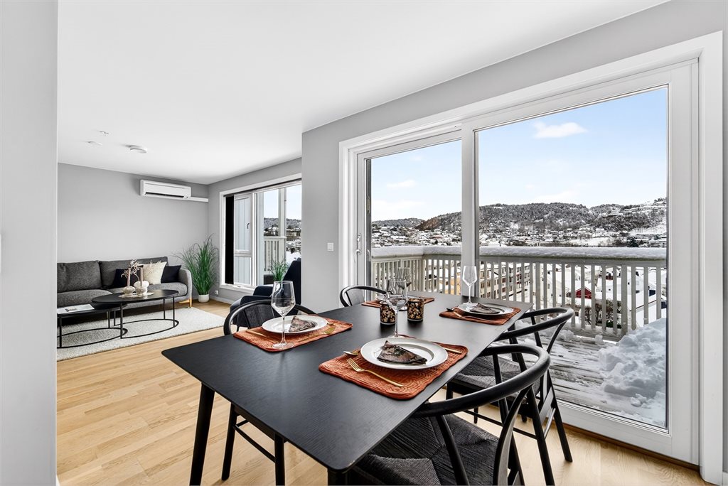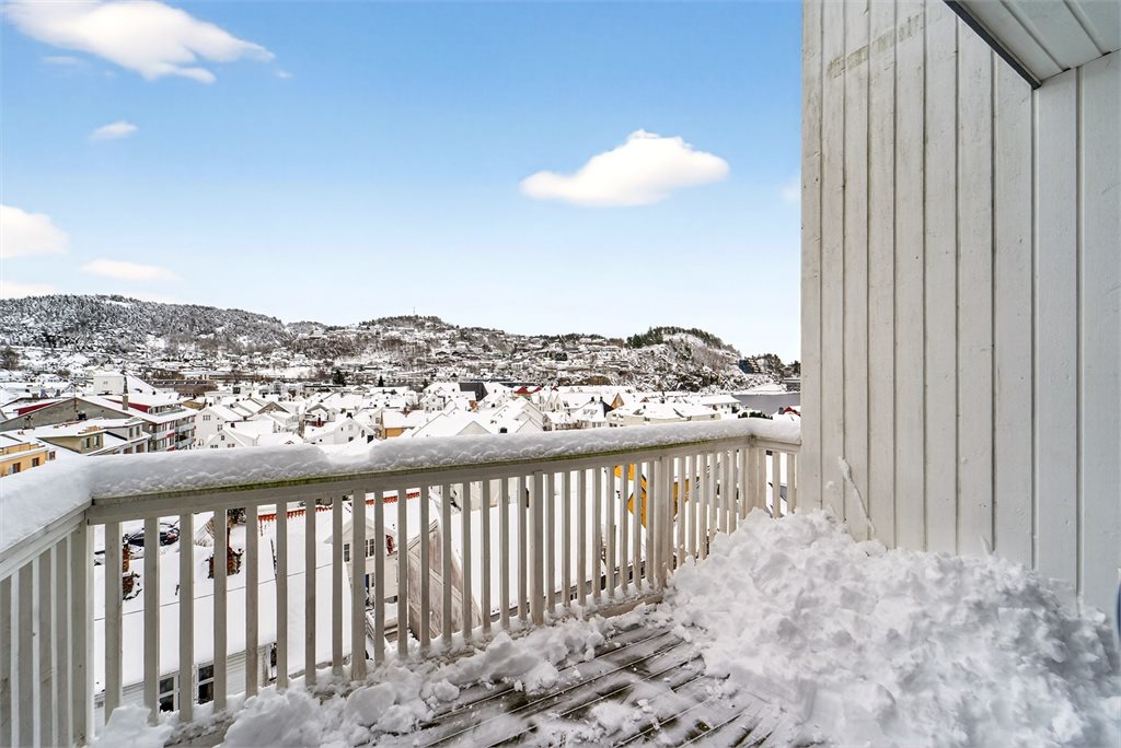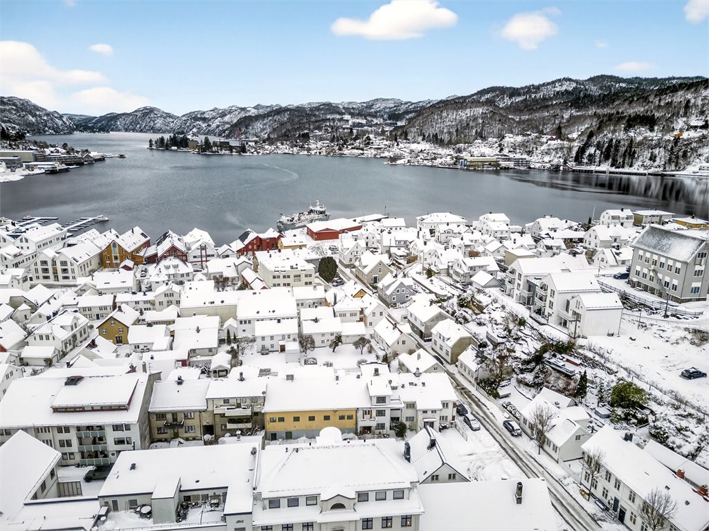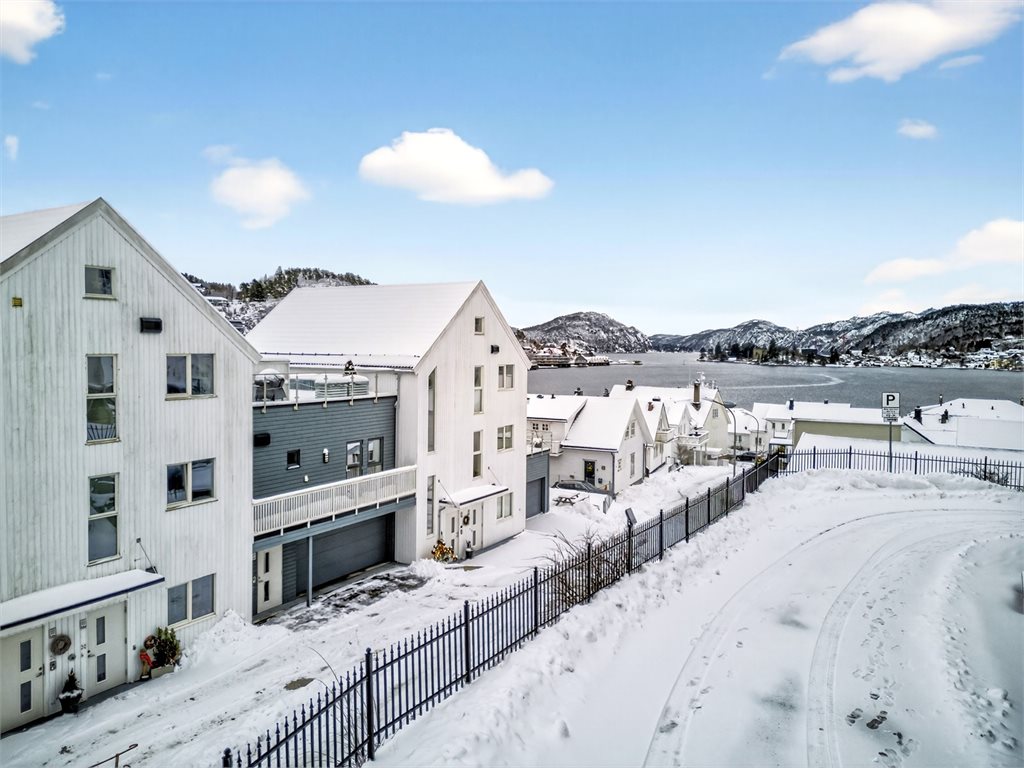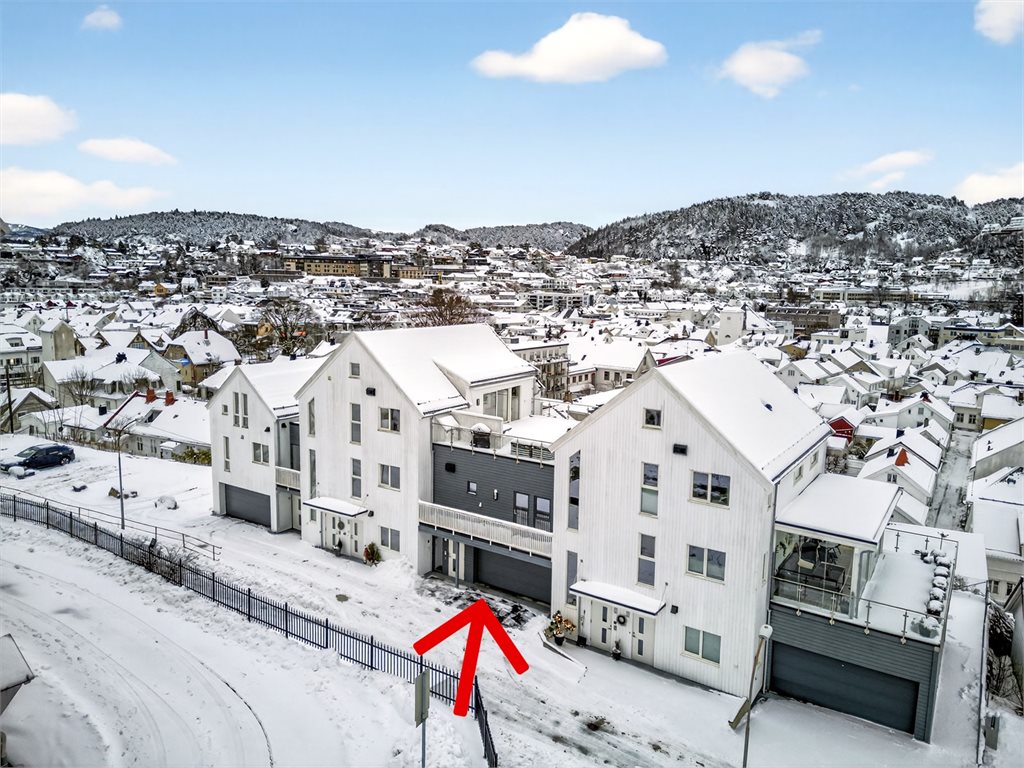 Eiendommen har en sentral og attraktiv beliggenhet i Flekkefjord sentrum, med kort gangavstand til "alt" av sentrumsfasiliteter. Her bor du tilbaketrukket, men samtidig midt i bybildet, med dagligvarebutikker, kaféer, bakeri, restauranter og øvrige servicetilbud lett tilgjengelig. Kulturhuset Spira, med kino, konserter, teater og bibliotek, er også innen gangavstand.Boligen har en flott beliggenhet med utsikt over sentrum og byfjorden. Området passer godt både for par, eldre, førstegangskjøpere og barnefamilier, med gangavstand til skole, barnehage og lekeområder.
