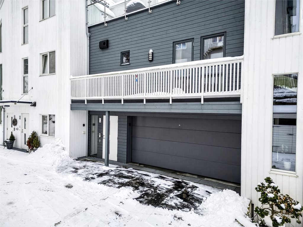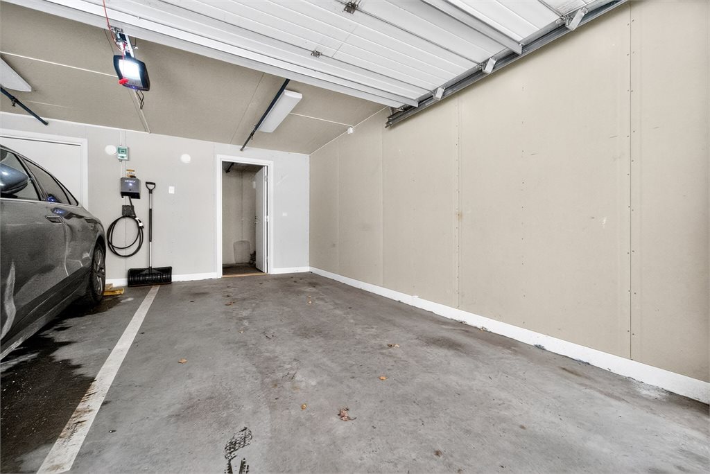 Parkering i garasje. Her må man kjøre inn slik at man har førerdøren mot midten.Hvitevarer