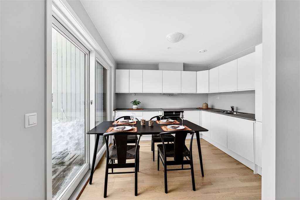 Alle integrerte hvitevarer (herunder eventuell oppvaskmaskin om det står i boligen på visningstidspunkt) på kjøkken følger med i handelen. Øvrige hvitevarer medfølger ikke dersom ikke det blir avtalt. Medfølgende hvitevarer følger i den stand de er på visning og gir ikke reklamasjonsgrunnlag.Adkomst
