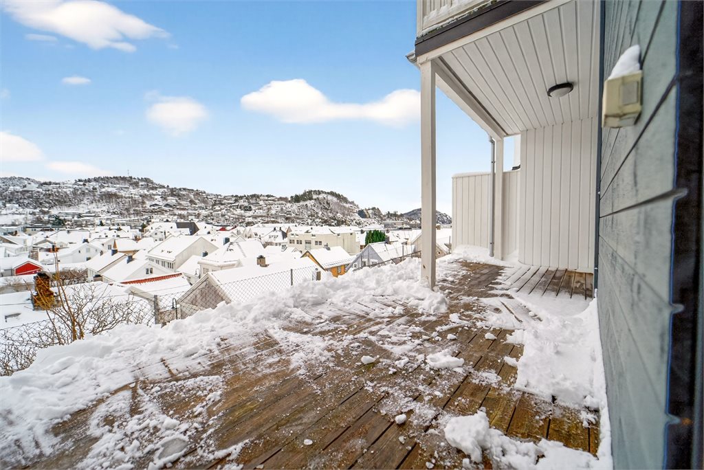 Terrasse er utført i trekonstruksjon med terrassebord.