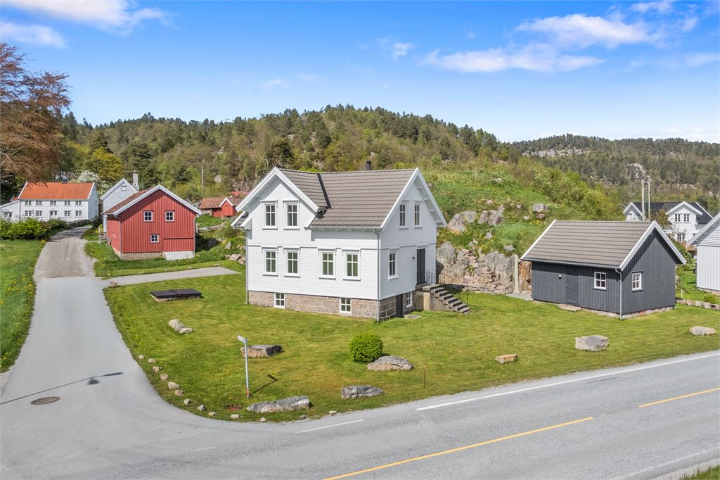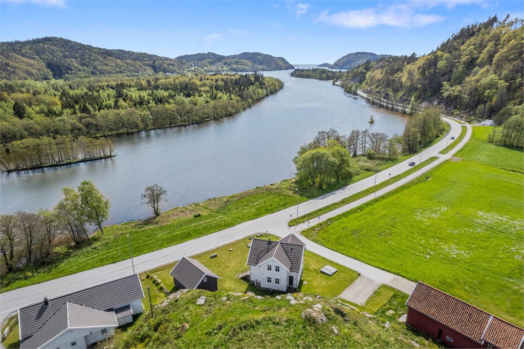 Idyllisk beliggenhet på Rødberg i Lindesnes kommune. Eiendommen ligger flott til med flott utsikt ut over Audnaelva. Området består av eldre og sjarmerende lanbruksbebyggelse og åpne landskap. Her er det kort vei til Vigeland med nødvendige fasiliteter som daglivare, skole m.m. Det er også kort vei til Snig og de populære landgrunne strendene.Parkering