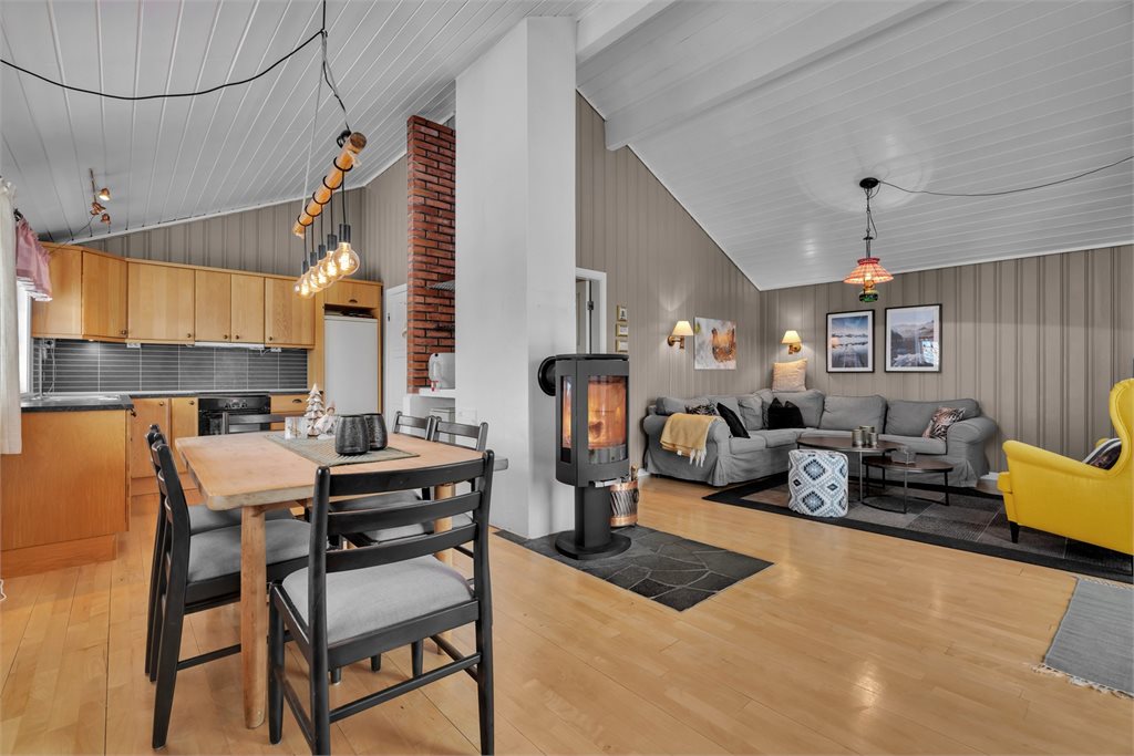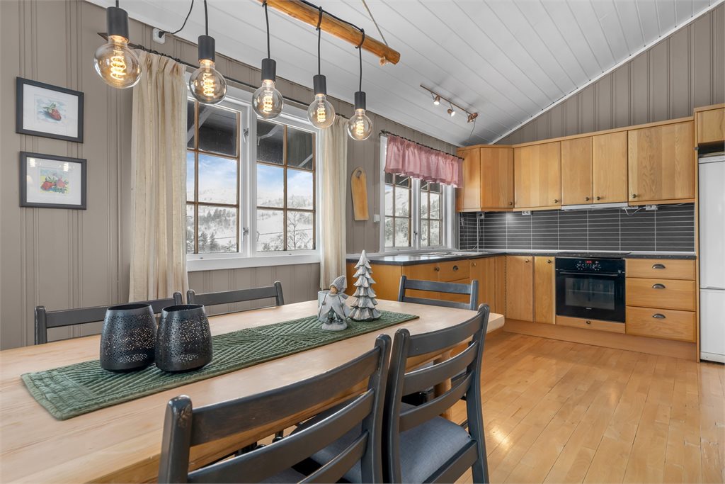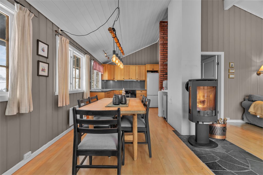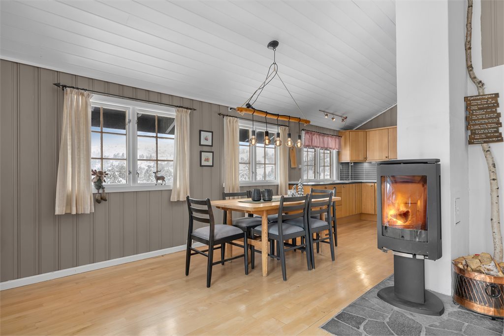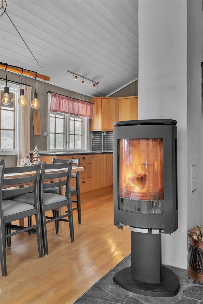 Hytta varmes opp med vedfyring. Ellers elektrisk oppvarming.Vegg-/fastmonterte ovner som står i boligen ved framvisning medfølger i handelen.