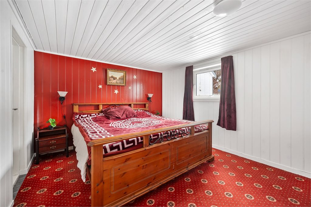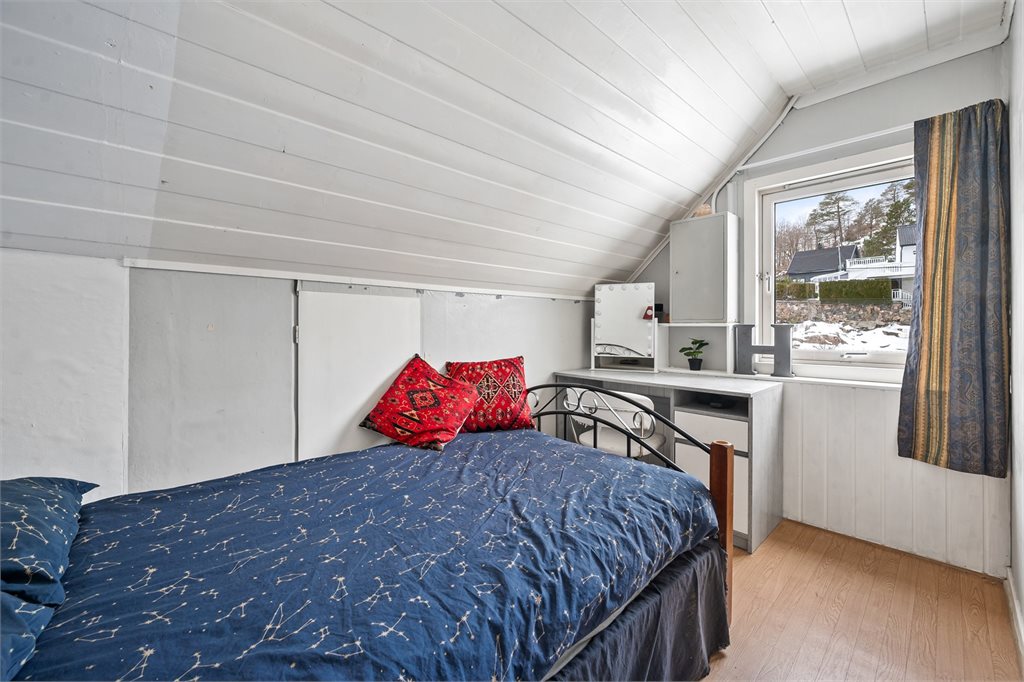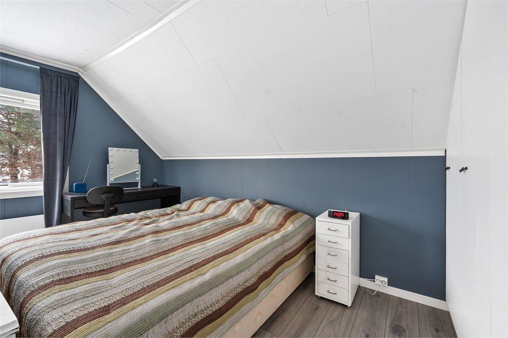 På opprinnelig godkjente tegninger er det tre soverom i loftsetasjen. På tegningene går veggen gjennom det store soverommet slik at det er delt i to.