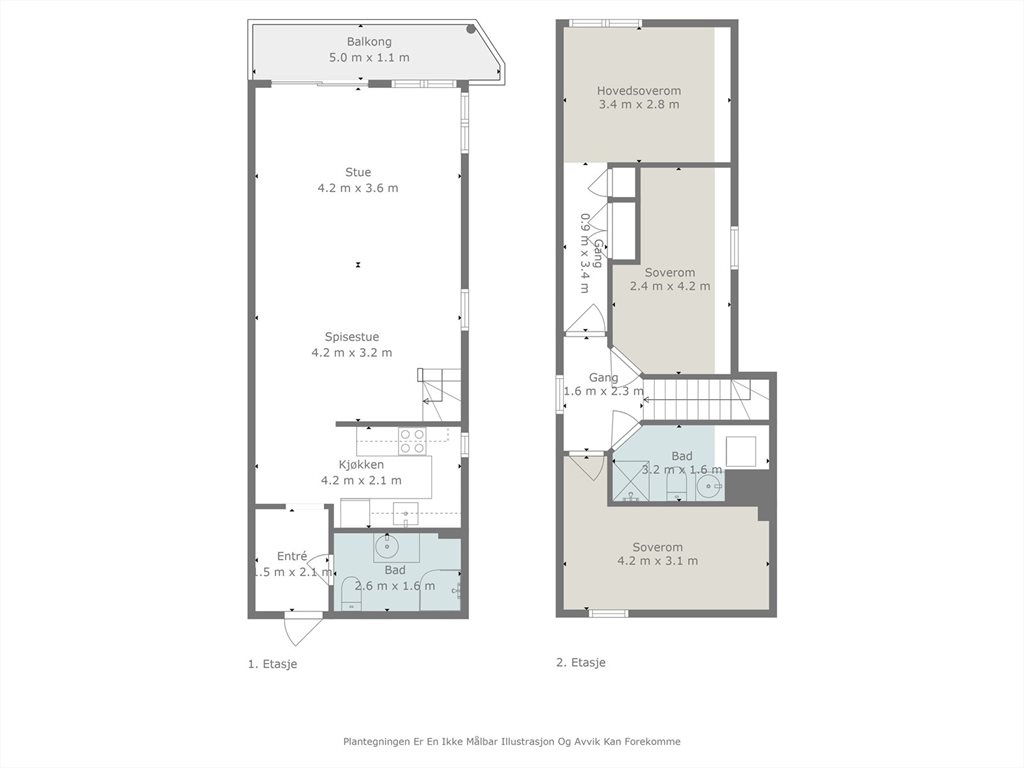 2 Etasje Bad, Kjøkken, Entré, Stue m/trappSoverom, Soverom 2, Soverom 3, Bad/vaskerom
