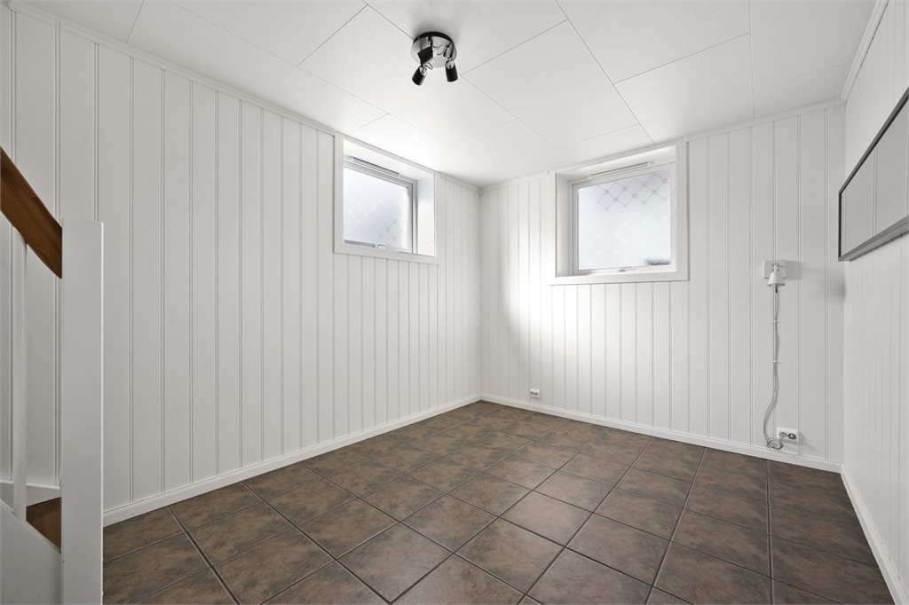 Det som på originale tegninger i kjeller er hobbyrom er idag innredet rom og bod.