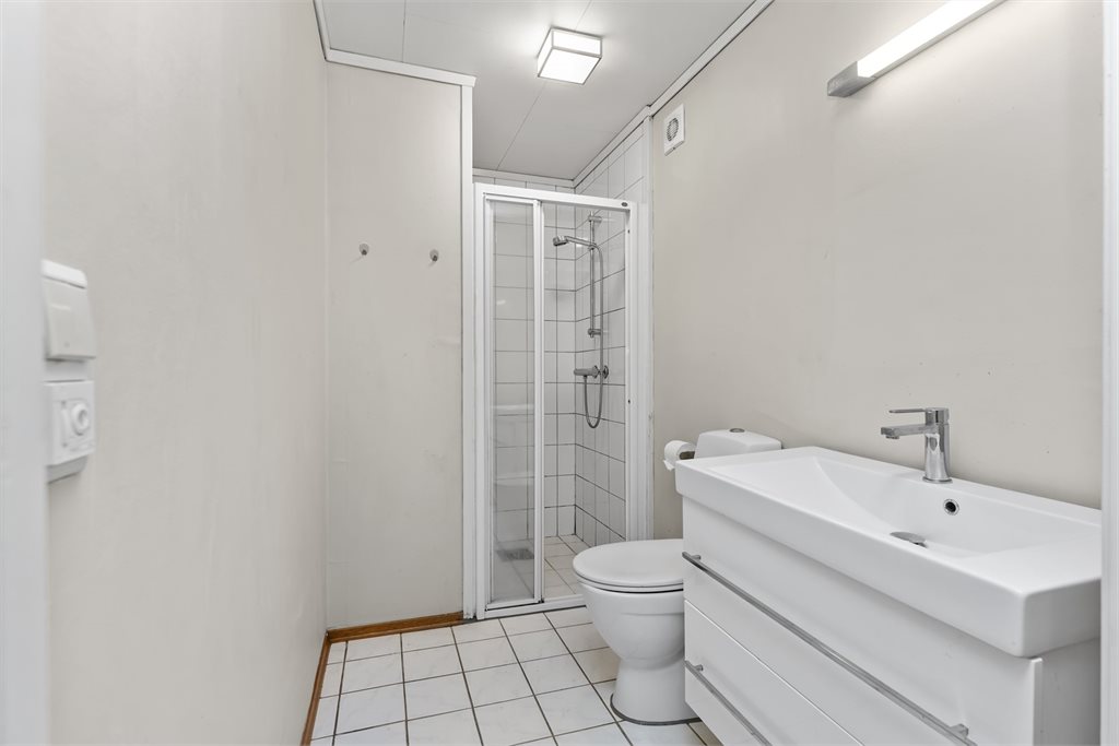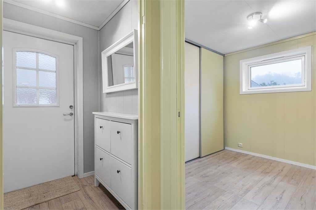 Arealeffektiv leilighet i 1.etg med vindfang, bod, teknisk rom, baderom, soverom og stue/kjøkken i åpen løsning. Romslig terrasse like utenfor.Det foreligger godkjente og byggemeldte tegninger, som stemmer med dagens bruk.