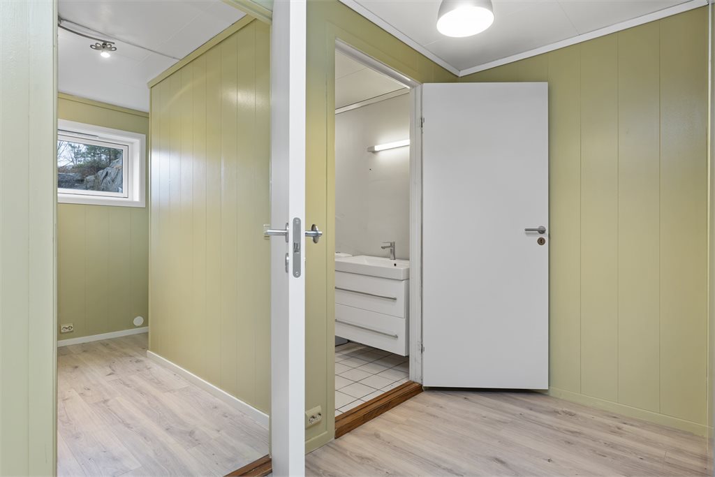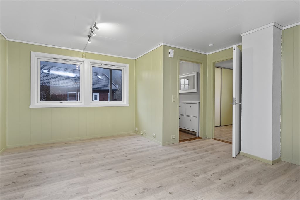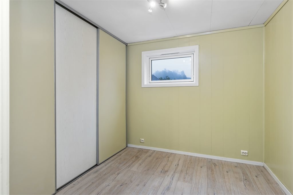 Det er lite dagslys på soverom og vindu oppfyller ikke dagens rømningskrav på det ene rommet.