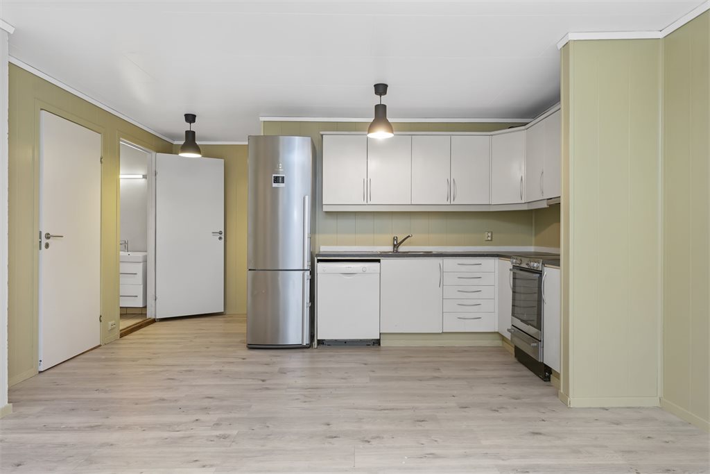 Alle integrerte hvitevarer (herunder eventuell oppvaskmaskin om det står i boligen på visningstidspunkt) på kjøkken følger med i handelen. Øvrige hvitevarer medfølger ikke dersom ikke det blir avtalt. Medfølgende hvitevarer følger i den stand de er på visning og gir ikke reklamasjonsgrunnlag.Adkomst