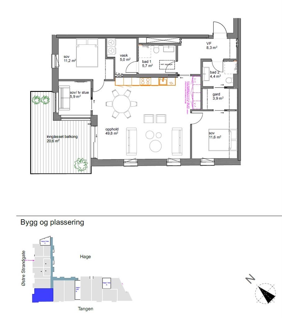 Boligen ligger i bebygd område som er godkjent for beboelse.Reguleringsplan: Tangen 9.