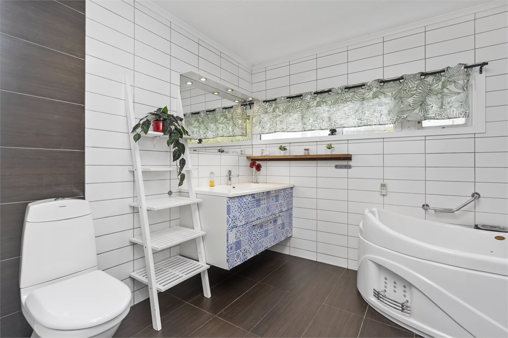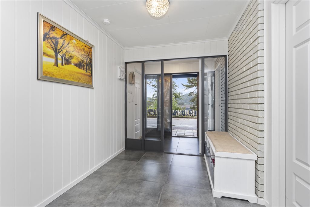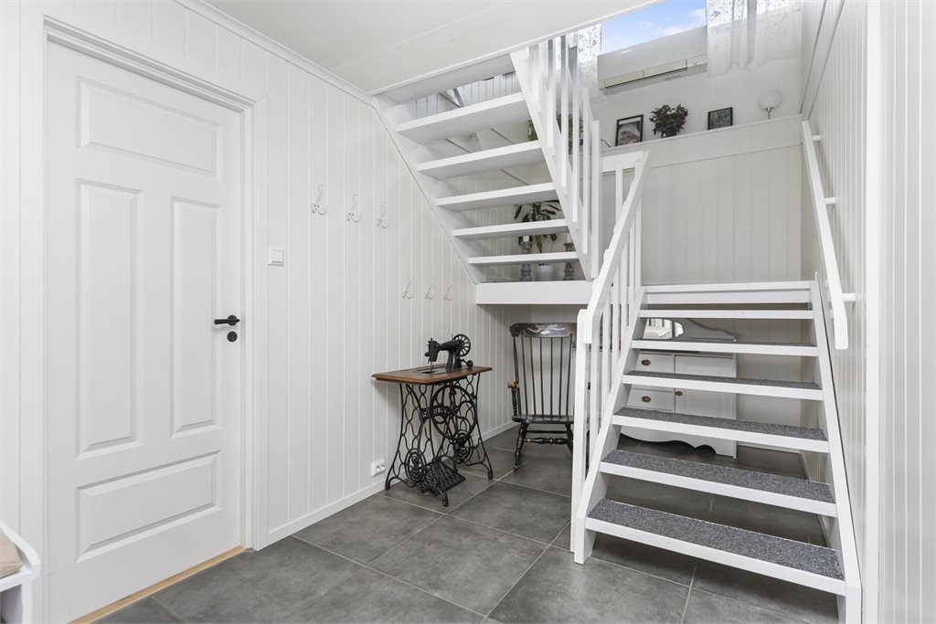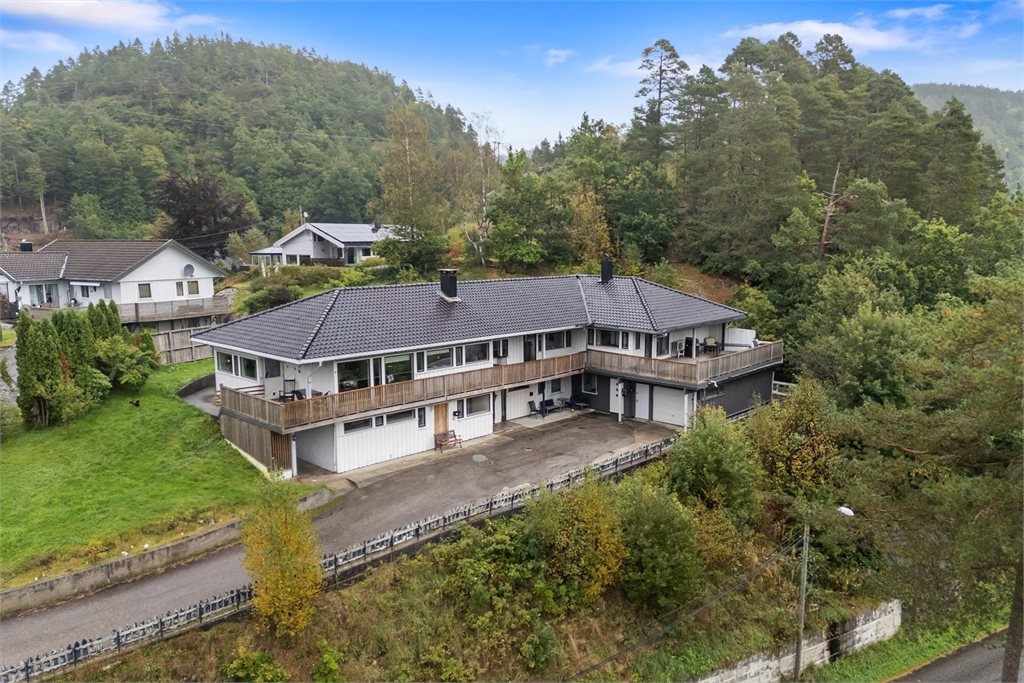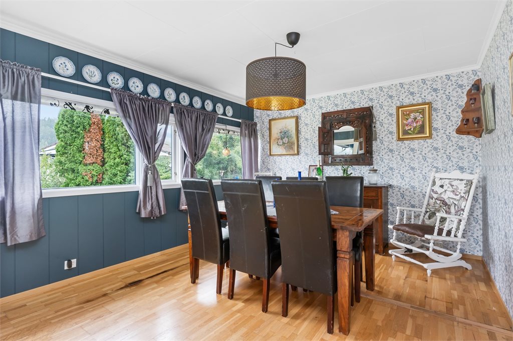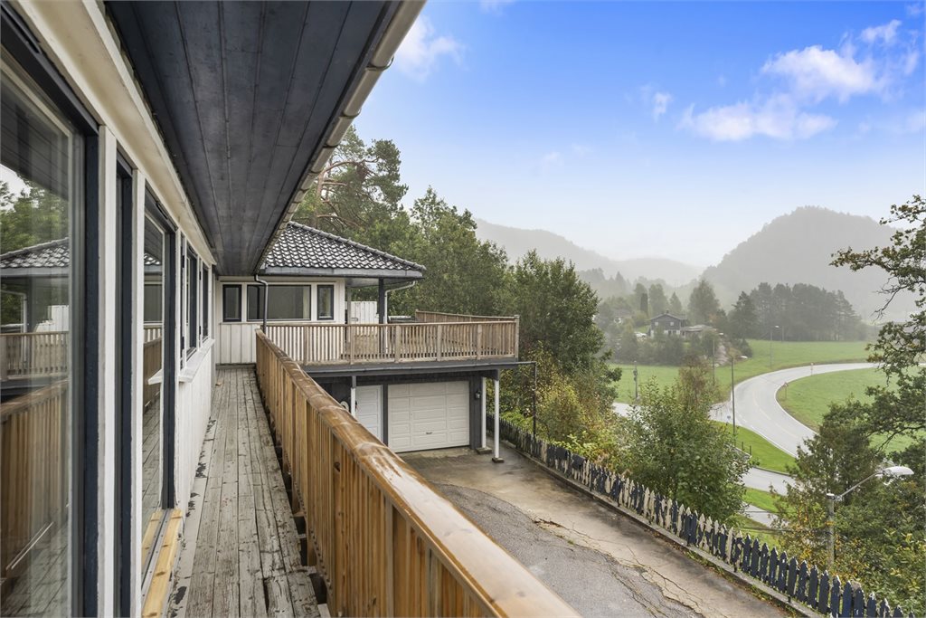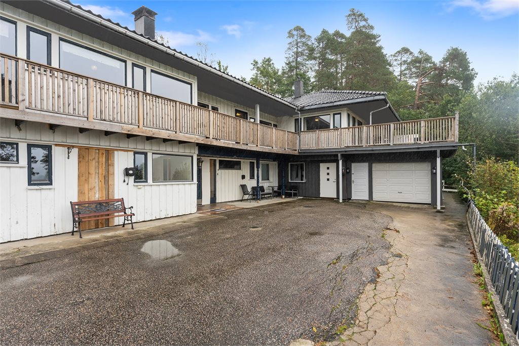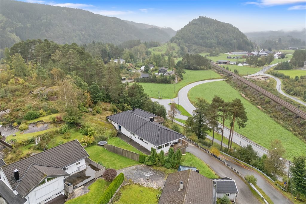 Romslig og innholdsrik enebolig med vindfang, hall m/trapp, gang, teknisk rom, innredet rom under oppussing, bod, mellomgang, innredet del med diverse rom og bod i 1.etg.I hovedetasjen er det gang, 2 stuer, 5 soverom, 2 baderom, vaskerom, bod og kjøkken.