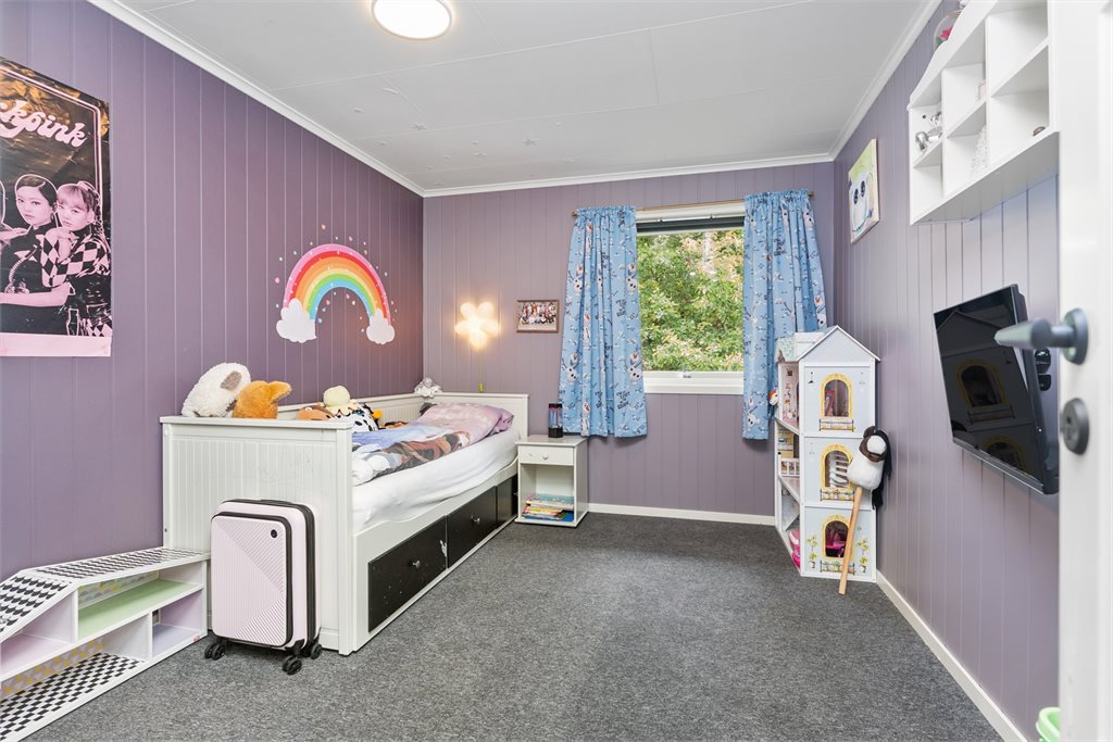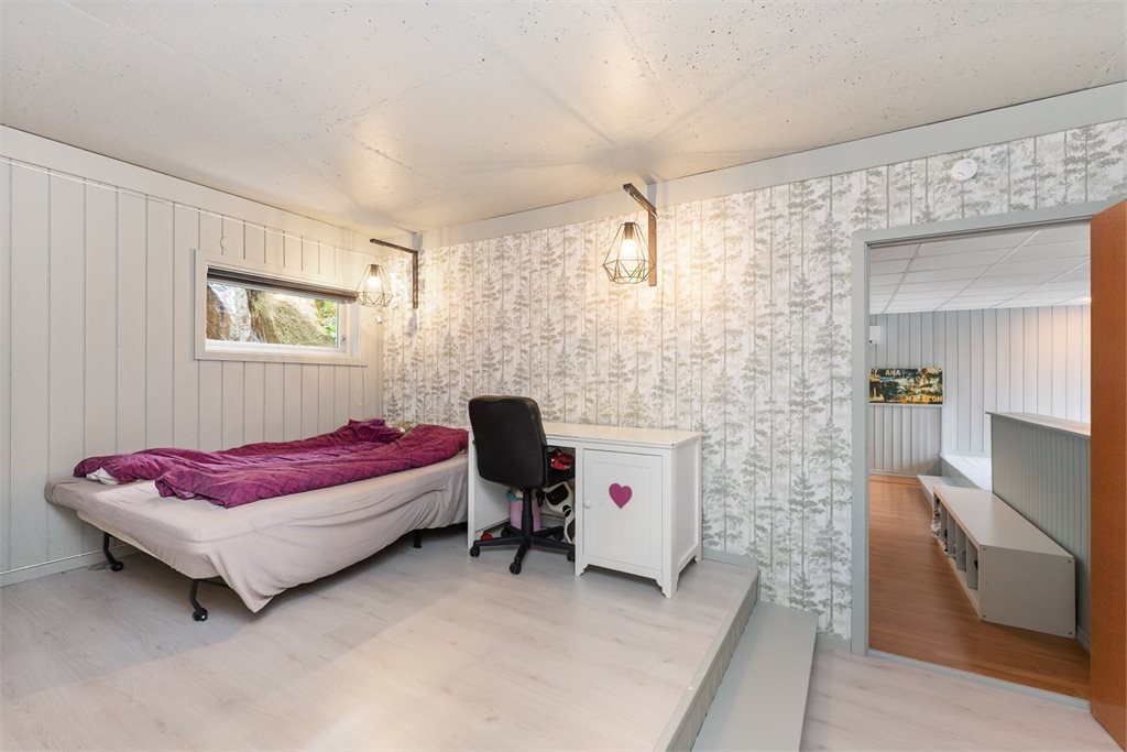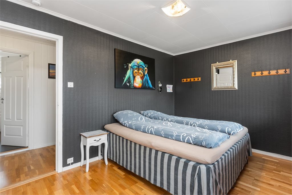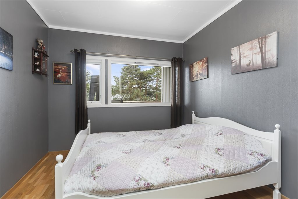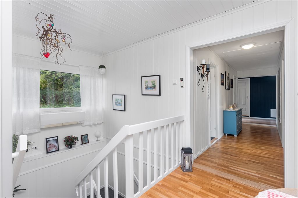 - I hovedetasjen er deler av stuen i dag entrè, trappegang blir brukt som soverom og et av soverommene er betegnet som kontor.