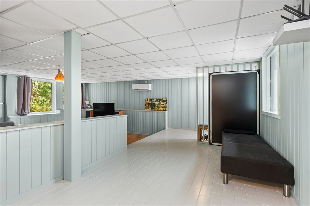 - I underetasjen på påbygget er det opprinnelig tegnet inn svømmebasseng, men er i dag innredet rom.