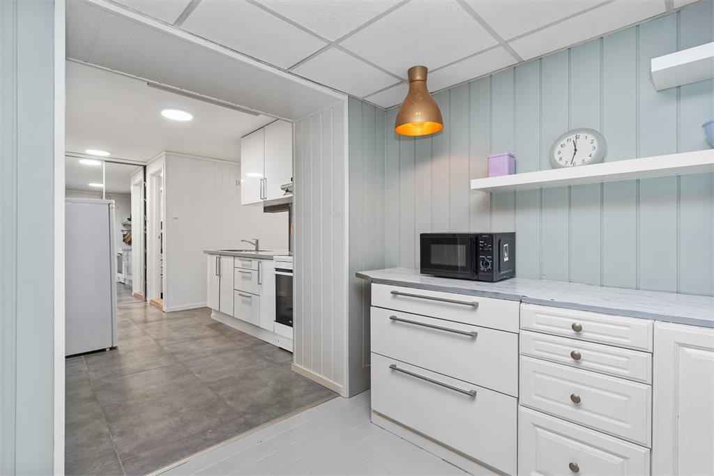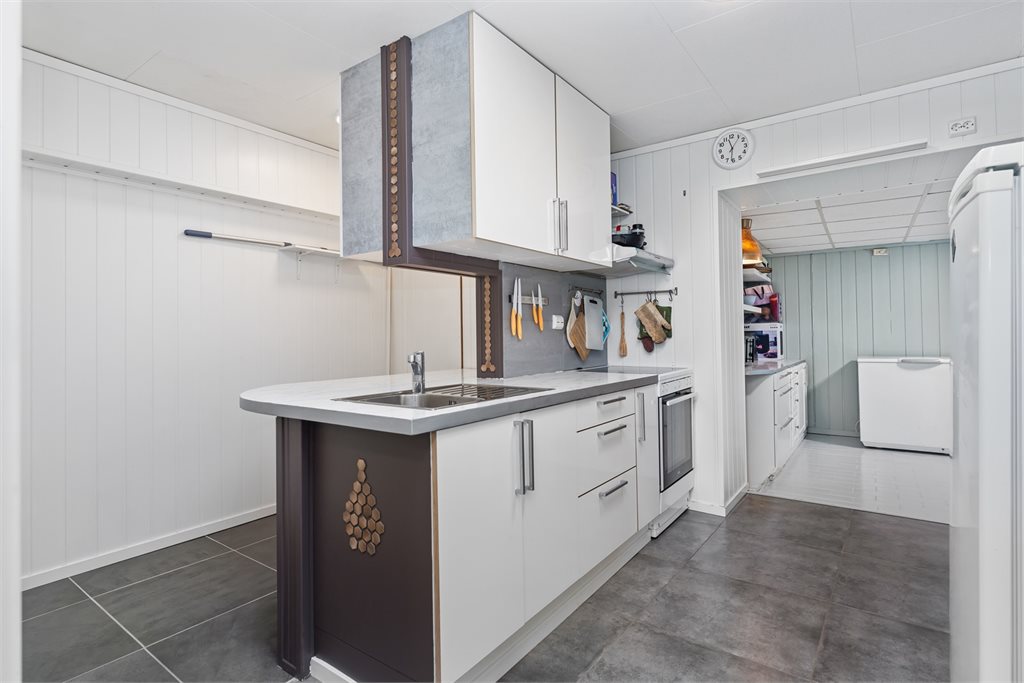 Alle integrerte hvitevarer (herunder eventuell oppvaskmaskin om det står i boligen på visningstidspunkt) på kjøkken følger med i handelen. Øvrige hvitevarer medfølger ikke dersom ikke det blir avtalt. Medfølgende hvitevarer følger i den stand de er på visning og gir ikke reklamasjonsgrunnlag.Hvitevarer i "leilighet" følger ikke med. 2 kjøleskap, 1 fryseskap og vaskemaskin medfølger ikke.